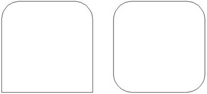 Nel secondo caso, si hanno quattro fori circolari agli angoli mentre, per semplicità, il resto del foro può essere scomposto in due fori rettangolari che formano una croce. Larghezze e altezze dei due rettangoli dipendono dalle posizioni dei due centri.