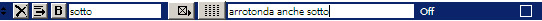 Digitiamo per prima cosa il nome della variabile: sotto (nel campo più a sinistra). Scegliamo il tipo adatta: booleano (dal menu pop-up a fianco del nome, scegliamo icona del quadrato con le due diagonali. Quindi la sua descrizione: arrotonda anche sotto (nel campo centrale). E quindi il suo valore di default: off (se volete che il bancale di default sia piatto). La prima fase è terminata. Ora visualizzate il testo GDL 3D e digitate quanto segue: