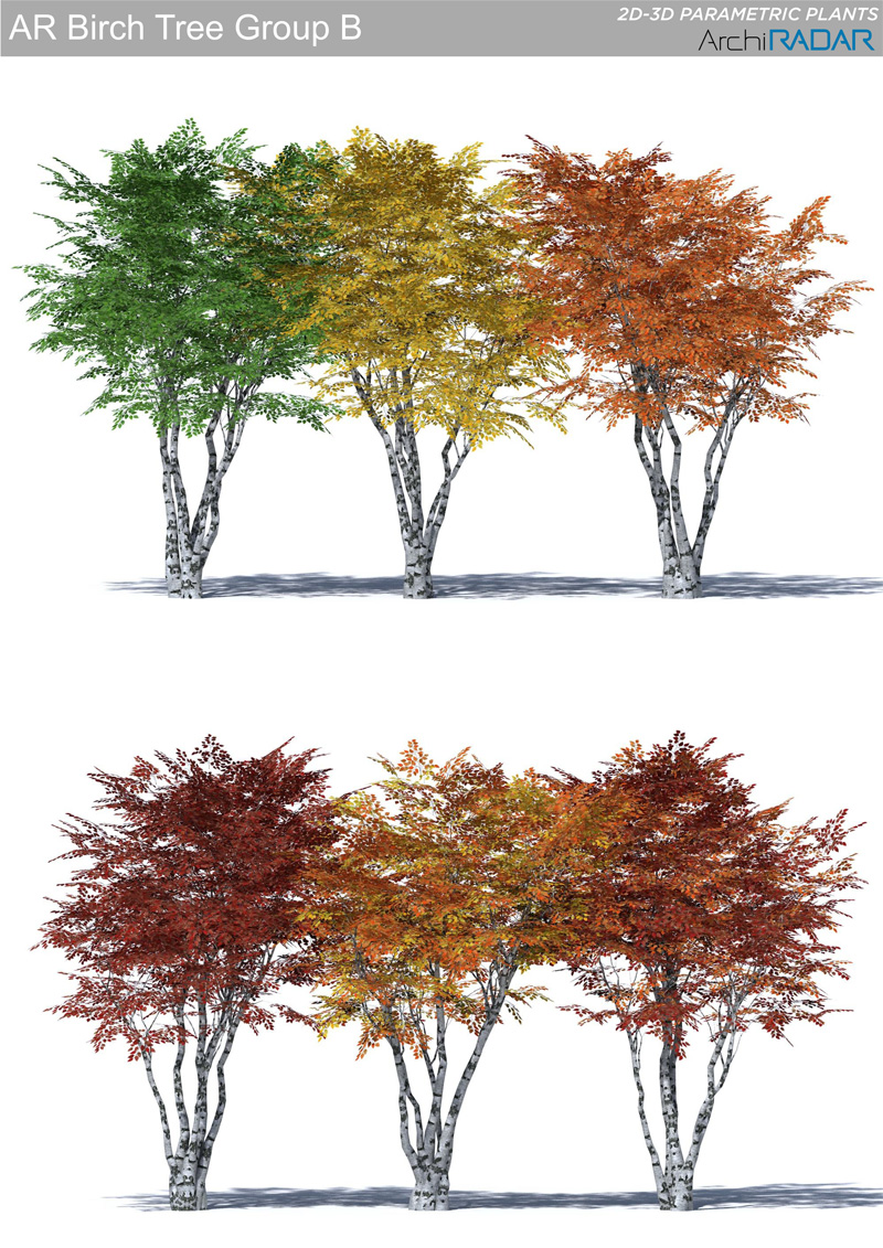 19 Modelli 3D di alberi diversi, compatibili con ArchiCAD 16 o superiore e ottimizzate per CineRender.