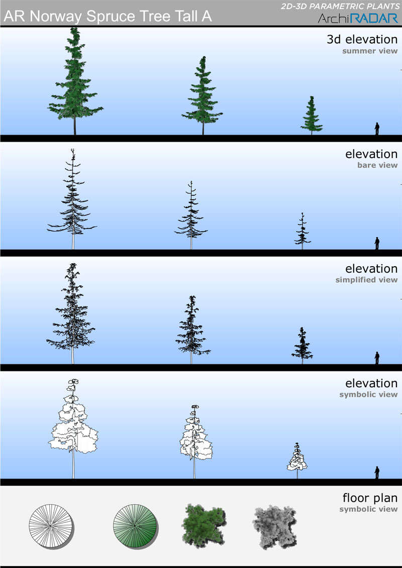 Opzioni disponibili all'interno degli oggetti:- Fattore di crescita reale- Vista simbolica in prospetto e sezione- Simbolo 2D con ombre- Simbolo 2D realistico- Livelli di dettaglio 3D- Opzione vento nei filmati- Stagioni (non per i sempreverdi)
